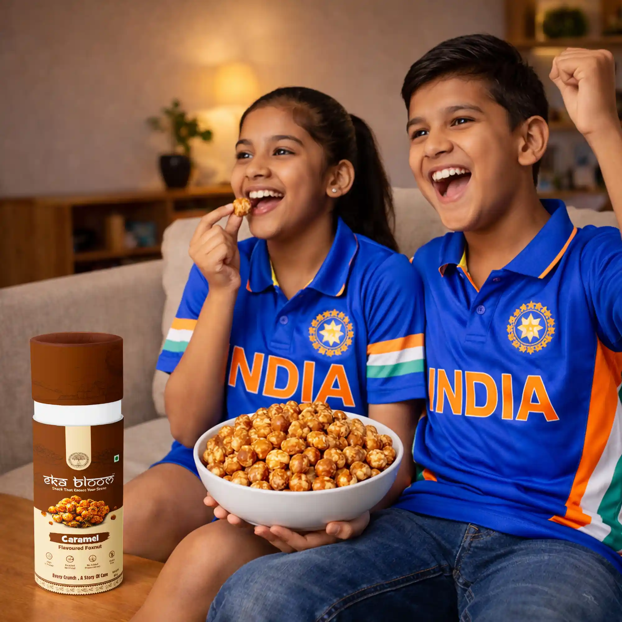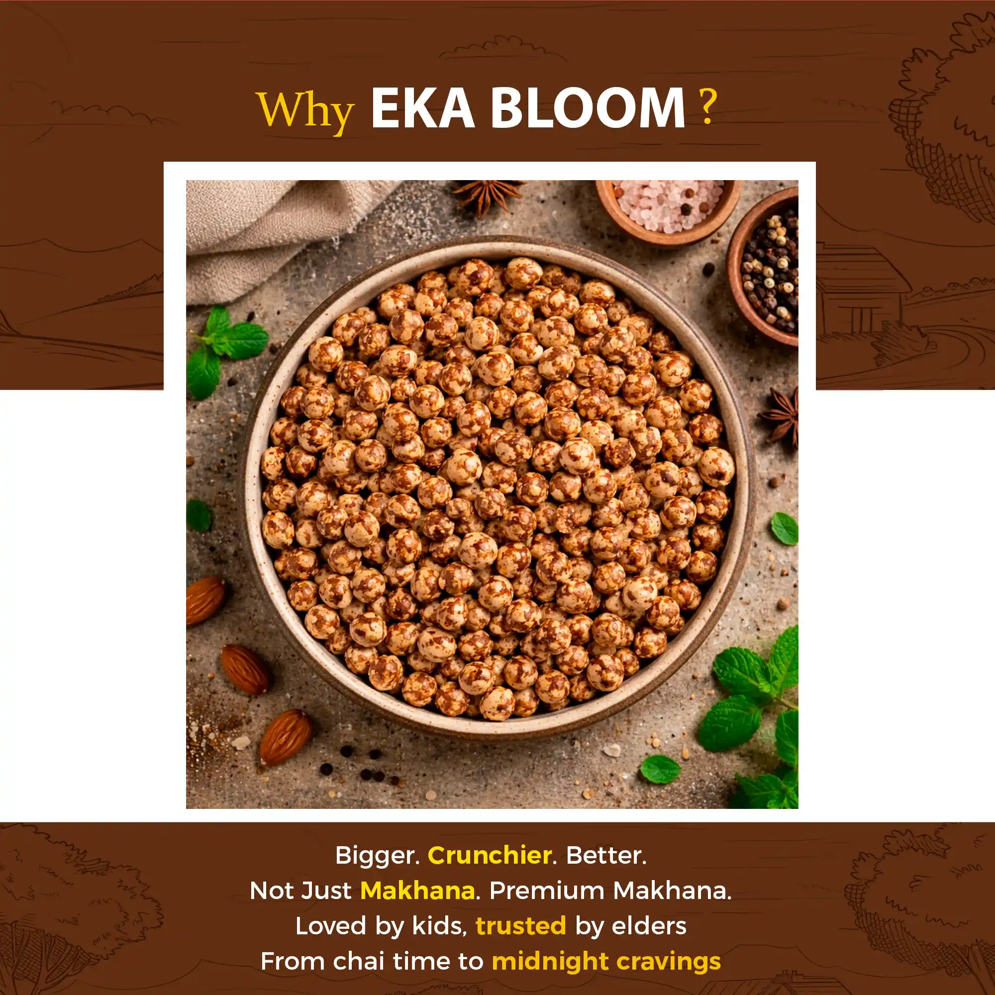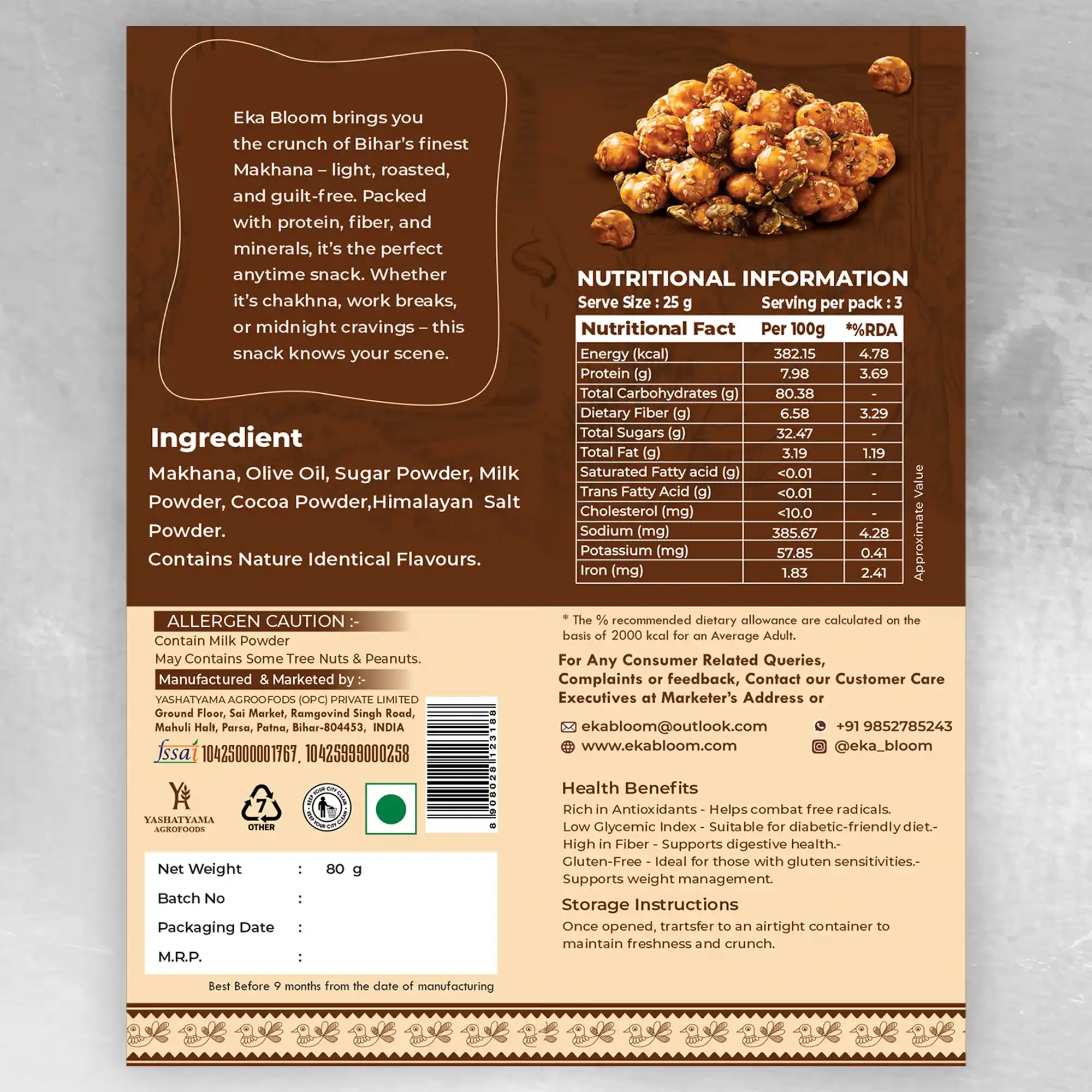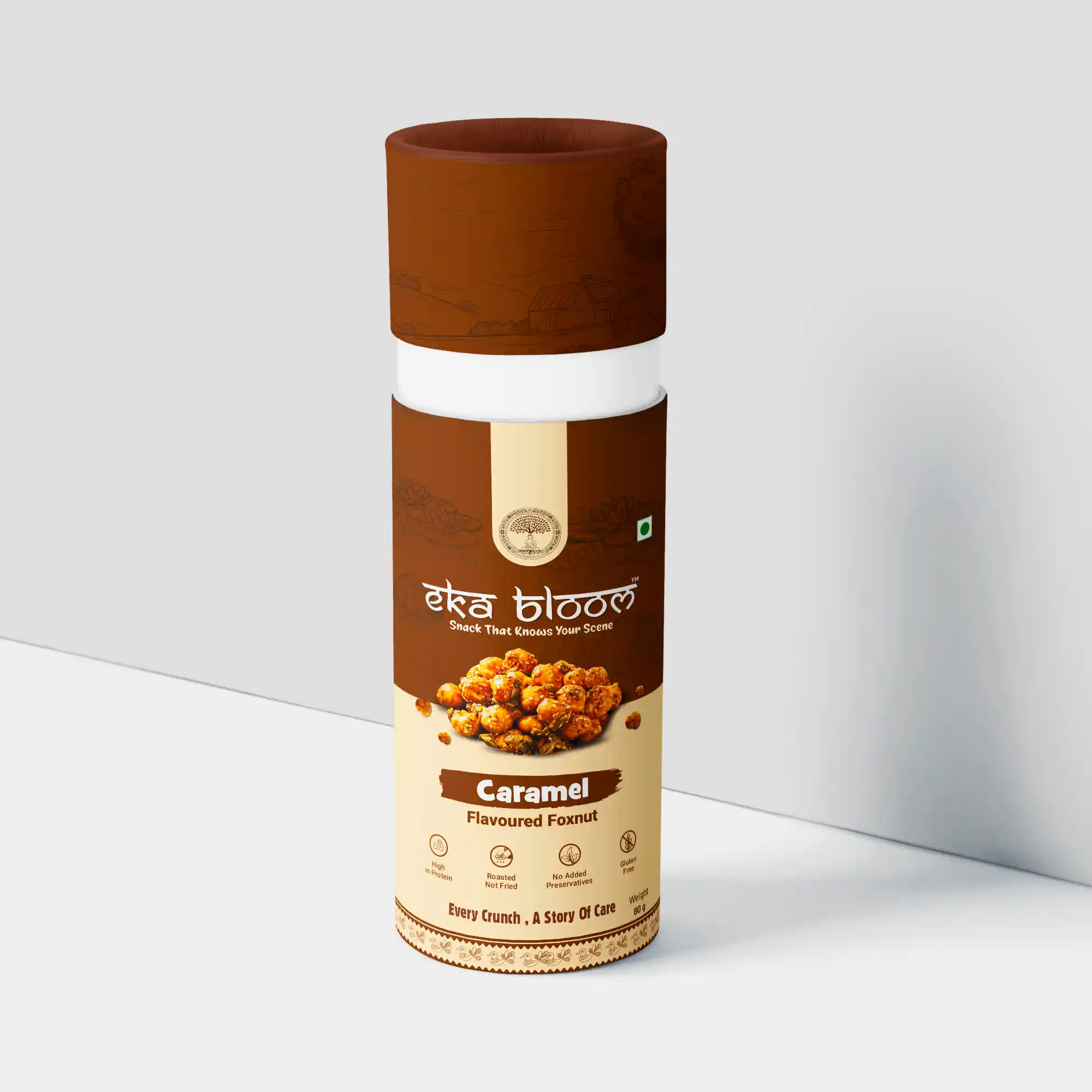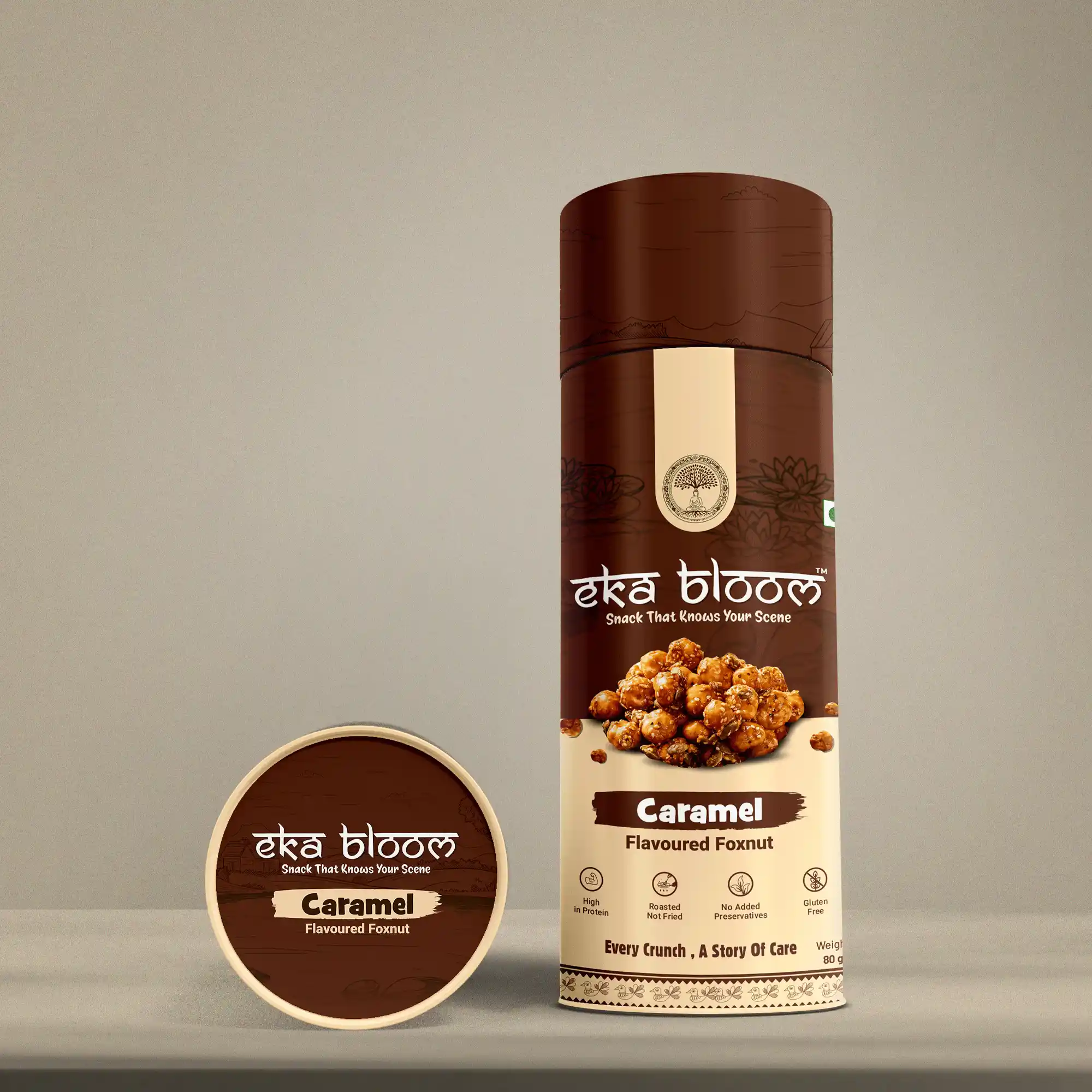Sweet caramel makhana in premium packaging for indulgence.