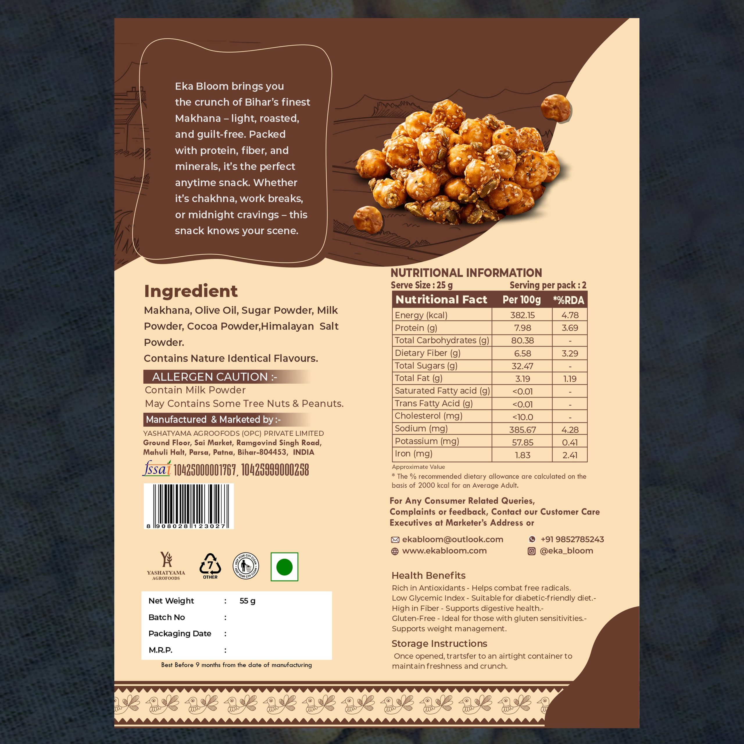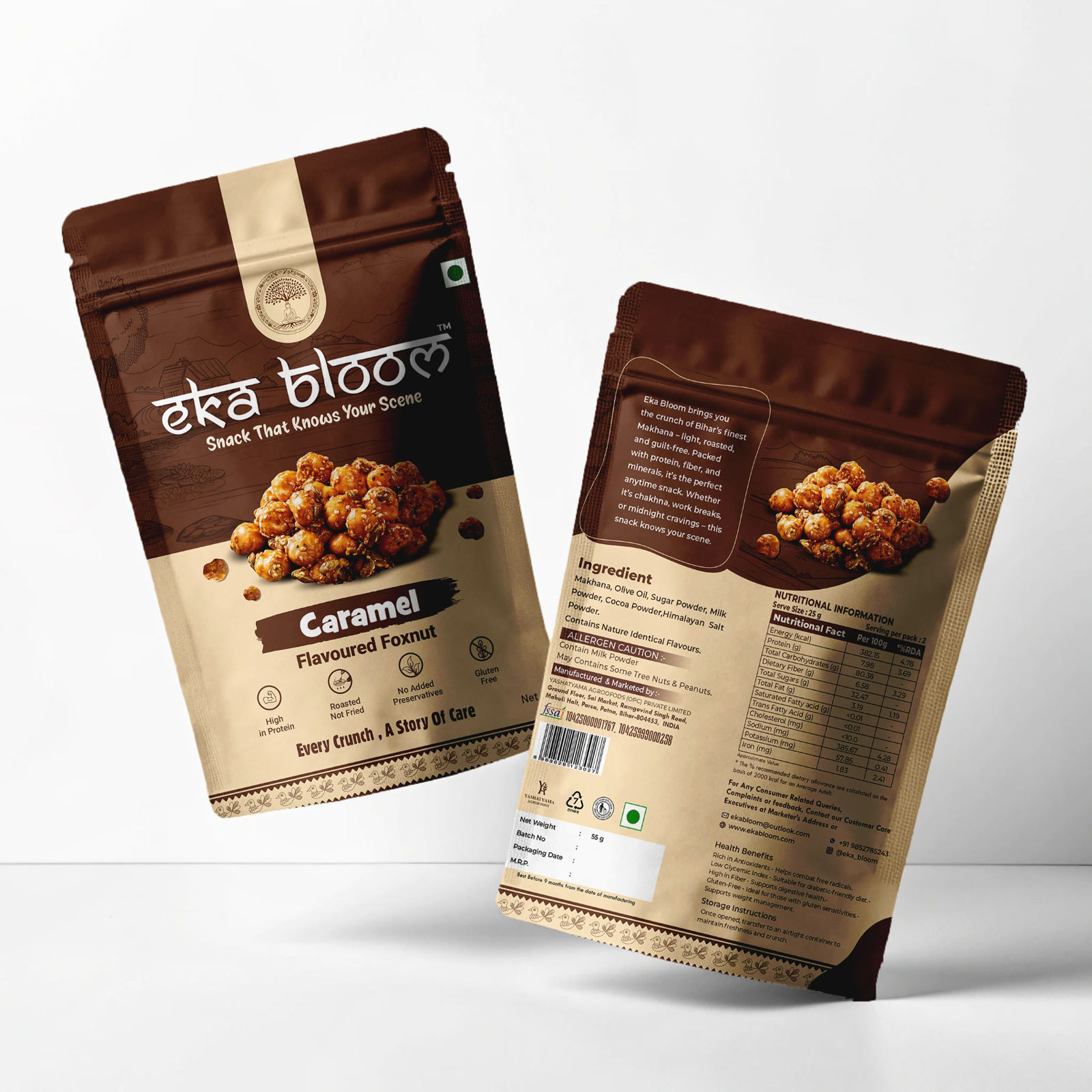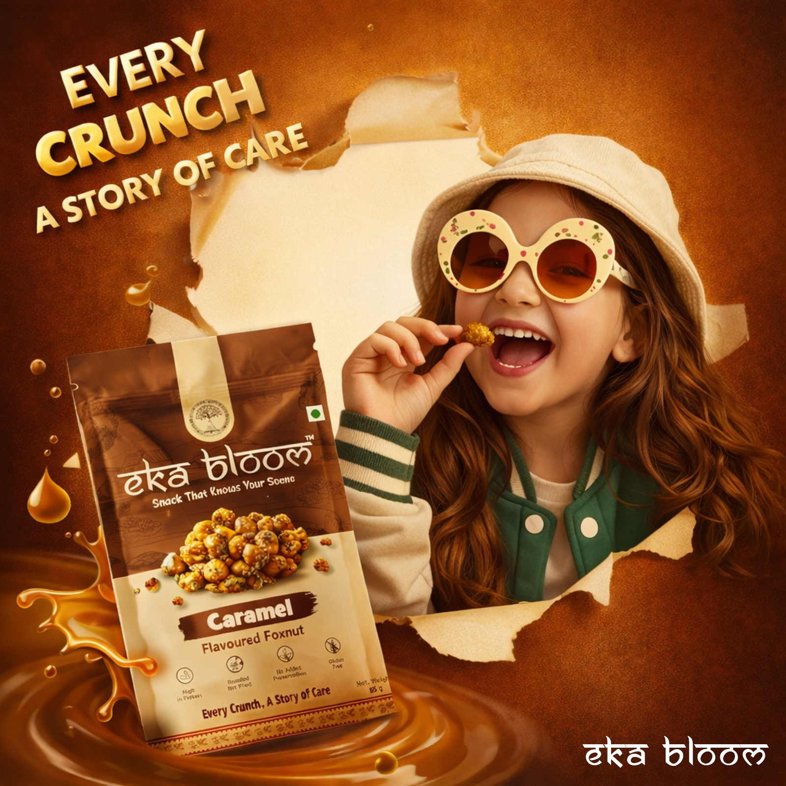 Light caramel glaze over roasted makhana, perfect for healthy dessert cravings.