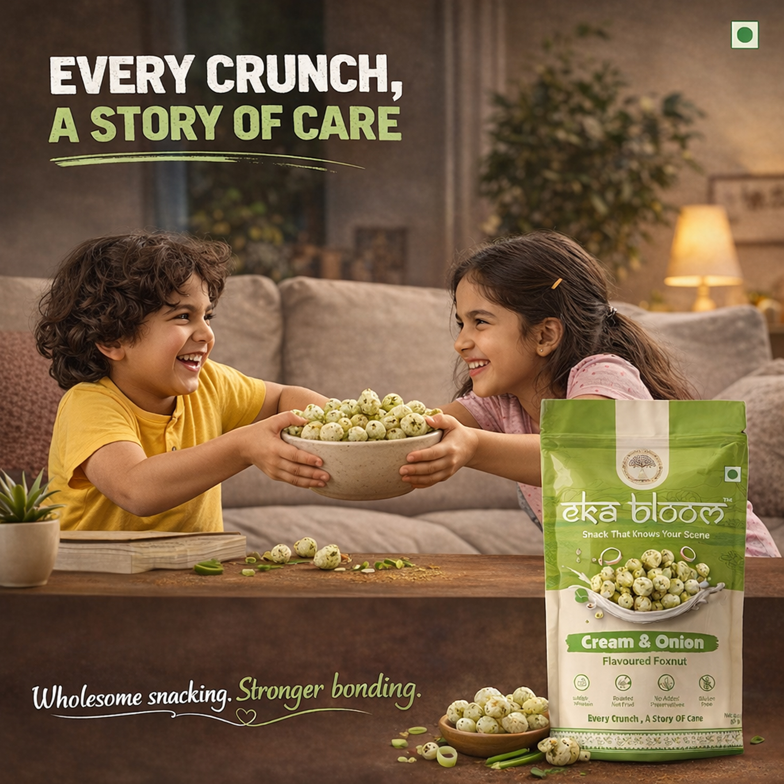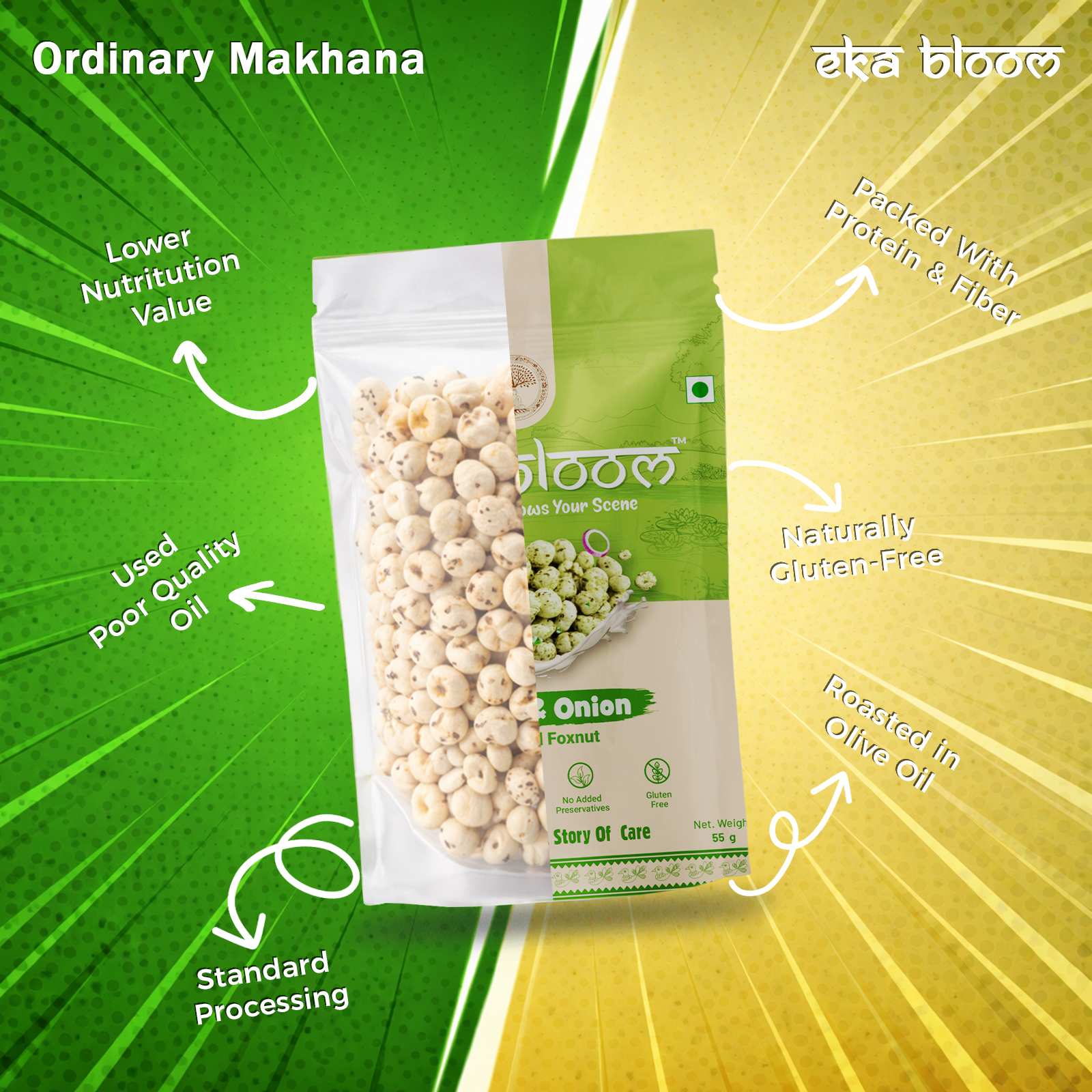 A creamy burst of flavor meets wholesome crunch. Olive oil roasted jumbo makhana for balanced savory snacking.