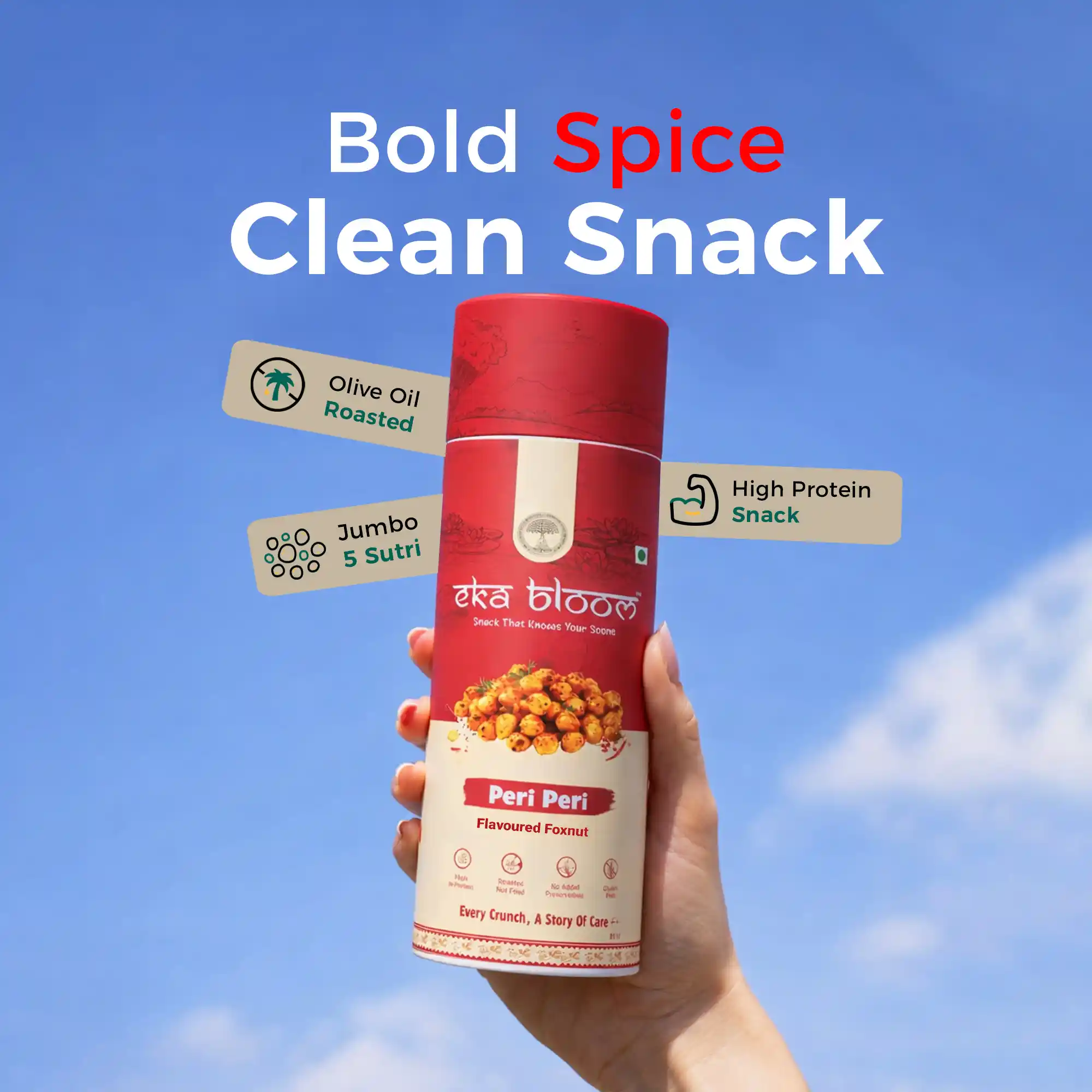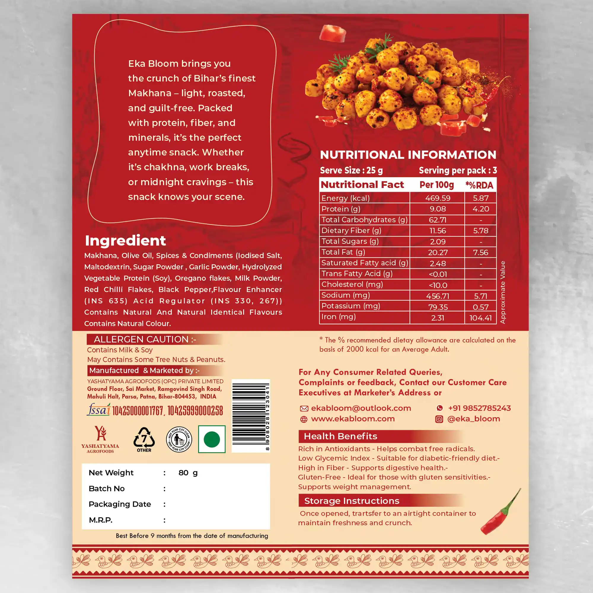 • Crunchy roasted makhana tossed in bold spicy seasoning and packed in a freshness-lock jar.